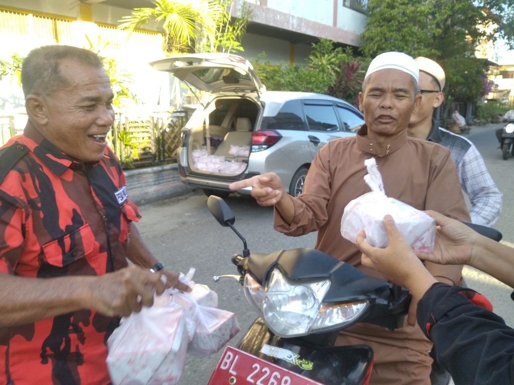 Sebanyak seratusan kotak takjil yang telah dipersiapkan oleh anggota PAC Pemuda Pancasila Kluet Utara ludes dalam sekejap di bagikan kepada pengguna jalan yang melintas di Jalan T. Meurah Adam Kotafajar Kluet Utara.