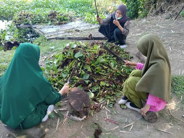 Tapaktuan, KBBACEH-News,-Merespon pemberitaan media terkait keluhan masyarakat nelayan Kuala Ba’u yang kehilangan lahan pencaharian akibat gangguan tumbuhan eceng gondok yang memadati badan air sungai Krueng Matee, Desa Pasie Kuala Ba’u, Kecamatan Kluet Utara, mahasiswa Politeknik Aceh Selatan adakan pengabdian masyarakat pemanfaatan tanaman eceng gondok sebagai bahan baku kompos.