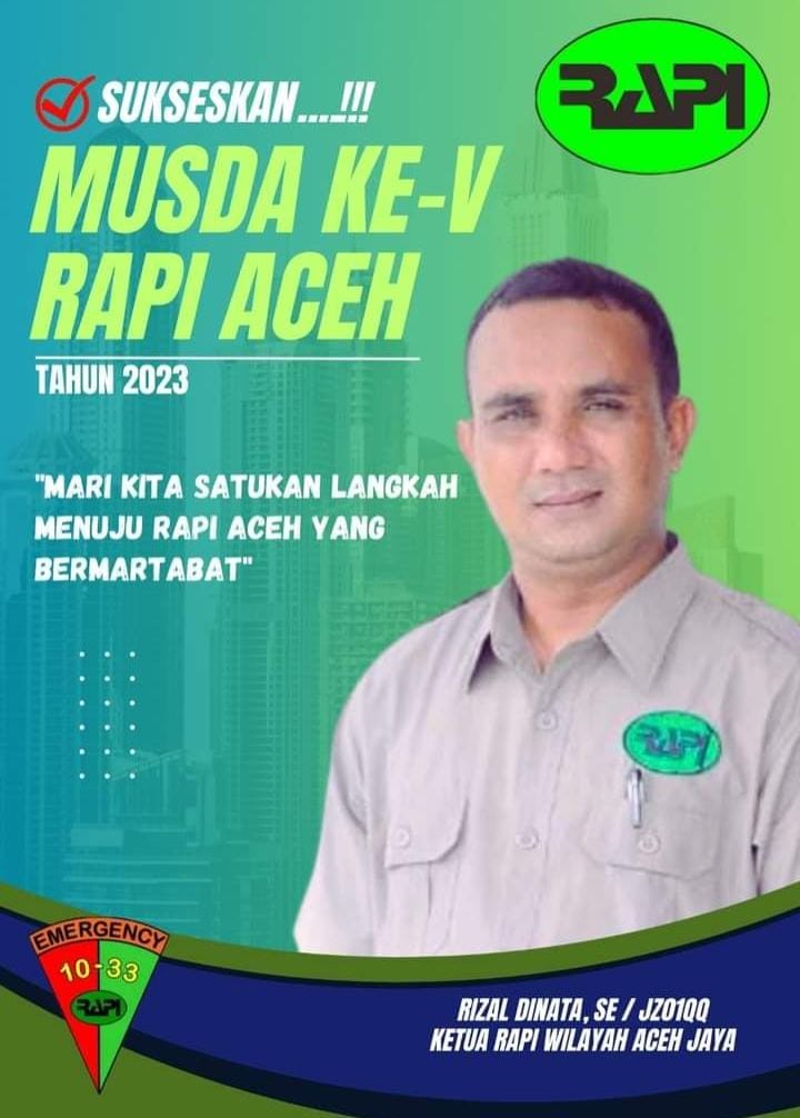 “Ya, saya siap maju sebagai calon Ketua RAPI Aceh karena merasa sebab organisasi RAPI ini adalah salah satu organisasi yang bergerak di bidang komunikasi dan banyak membantu dalam kegiatan kebencanaan,” kata Bang Rizal sapaan sehari-hari Rizal Dinata ketika dikonfirmasi, Jum’at (19/5/2023) malam.