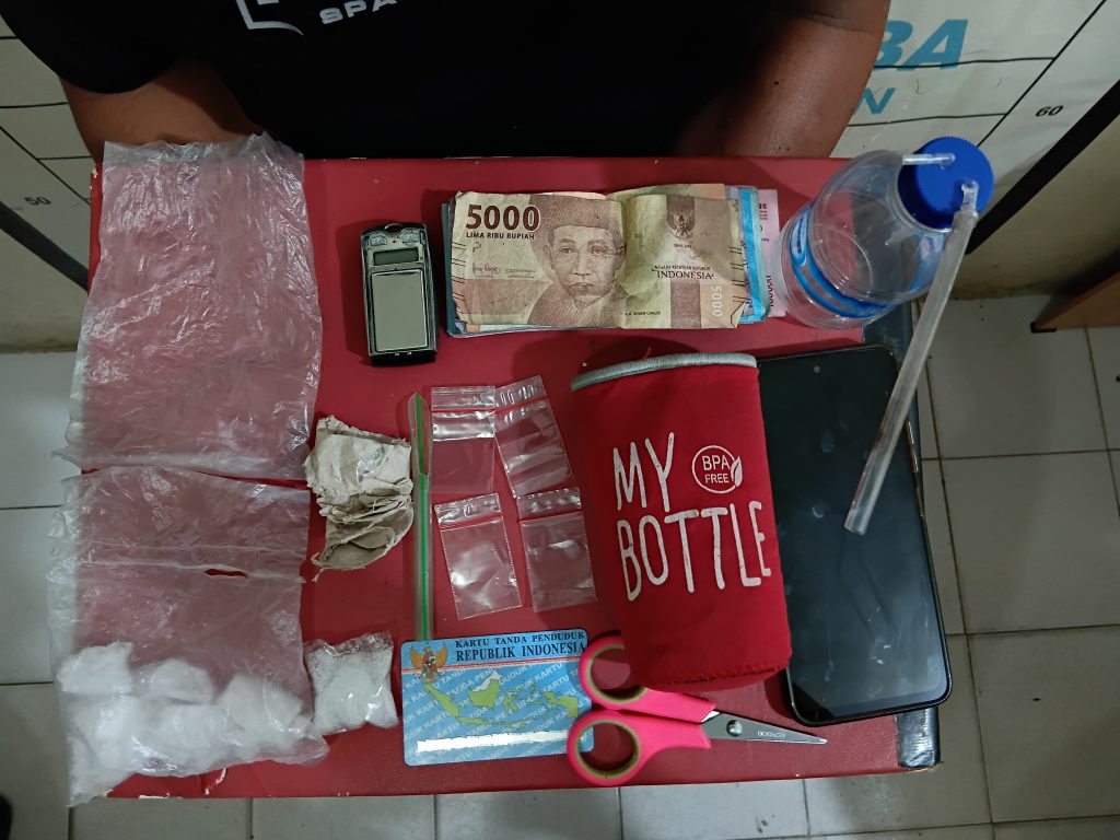 Hasil interogasi di lapangan, tersangka mengakui masih menyimpan narkotika lainnya di rumahnya. Petugas kemudian bergerak ke kediaman tersangka dan menemukan satu paket sabu tambahan. Total barang bukti yang berhasil diamankan mencapai 36,75 gram sabu, disita bersama barang pendukung lainnya seperti timbangan digital, handphone, plastik klip, bong, sendok rakitan, serta uang tunai sebesar Rp2.100.000, yang diduga hasil transaksi narkoba.
