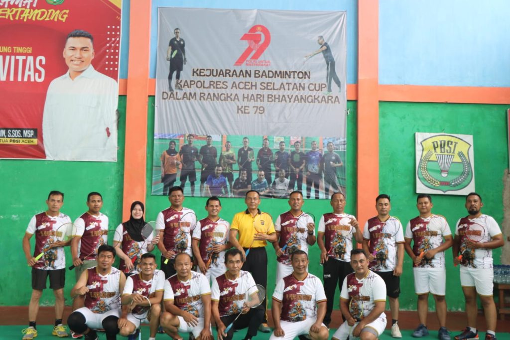 KBBAceh.News | Tapaktuan – Dalam rangka memeriahkan Hari Ulang Tahun (HUT) Bhayangkara ke-79 tahun 2025, Polres Aceh Selatan Polda Aceh menggelar Kejuaraan Badminton “Kapolres Cup” yang melibatkan personel Polres dan Polsek jajaran. Kegiatan berlangsung meriah di Gedung Olahraga (GOR) PU Pemda Aceh Selatan dan secara resmi dibuka oleh Kapolres Aceh Selatan AKBP T. Ricki Fadlianshah, S.I.K., diwakili Wakapolres Aceh Selatan Kompol Edwin Aldro, S.H., M.H, Senin, 16 Juni 2025.