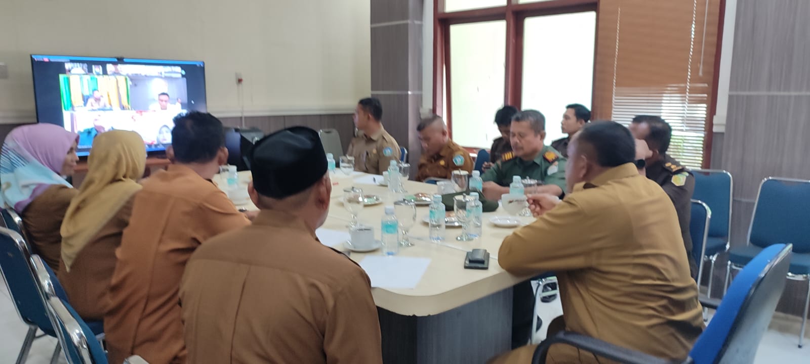 Tpaktuan, KBBAceh.nees – Pj. Bupati Aceh Selatan Cut Syazalisma S.STP yang diwakili oleh Asisten II Setdakab, H.T. Darisman dan seluruh OPD terkait, juga perwakilan dari Polres, *Kejaksaan Negeri dan* Kodim 0107 Aceh Selatan mengikuti zoom meeting, terkait inflasi tahun 2023, bertempat di Aula Lantai II Setdakab Aceh Selatan, Senin (23/10/2023).